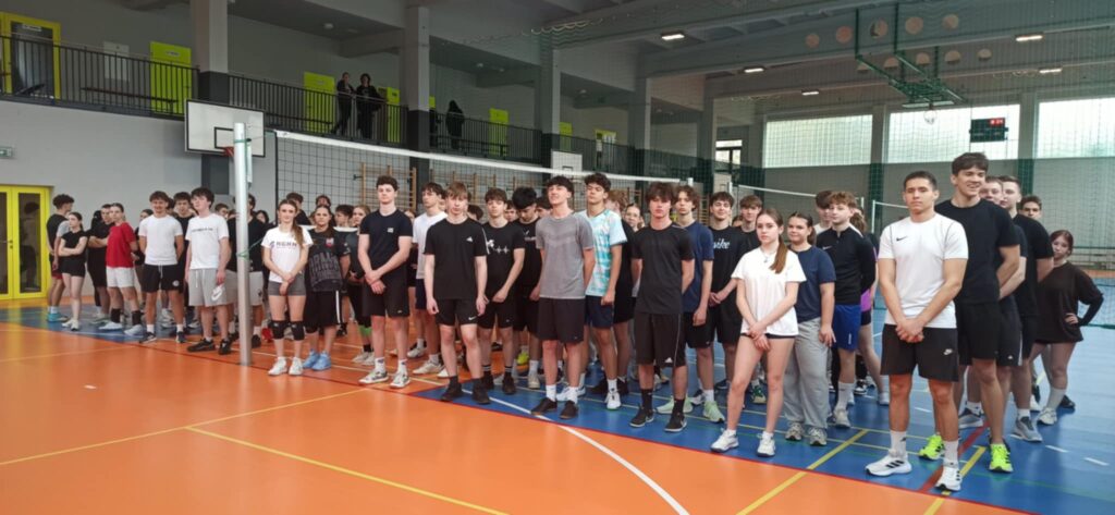 W dniu 15.04.2026 r. zakończyliśmy rozgrywki grupowe Mistrzostw Szkoły w Piłce Siatkowej Drużyn Mieszanych. W tym dniu rywalizowało 12 klas z grup: D, E, F. Po emocjonujących meczach, do kolejnej fazy zawodów awansowały klasy: